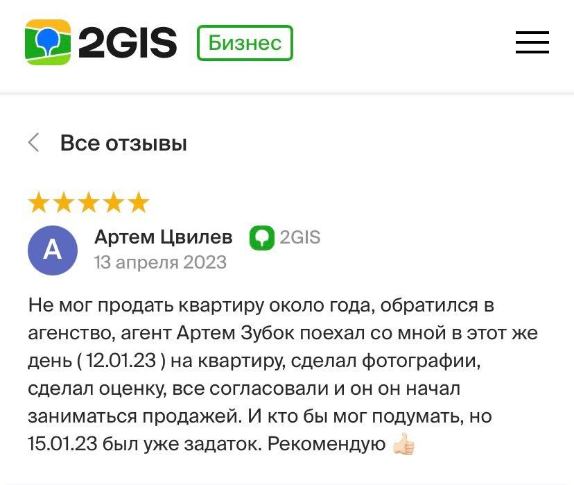 ЗаботаНе мог продать квартиру около года, обратился в агентство, агент Артём Зубок поехал со мной в этот же день (12.01.23) на квартиру, сделал фотографии, сделал оценку, всё согласовали и он начал заниматься продажей.