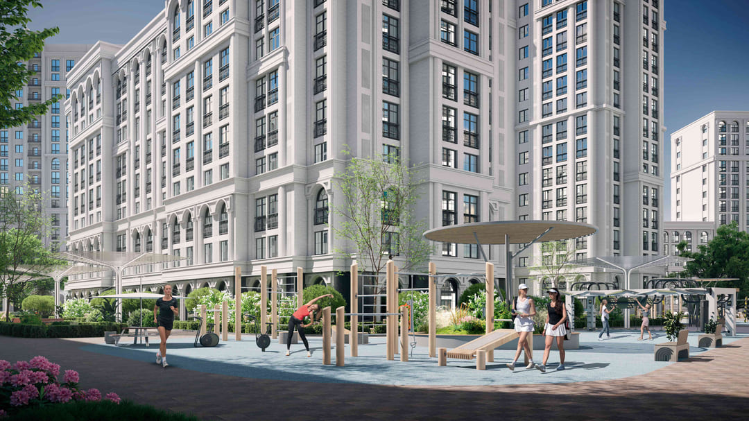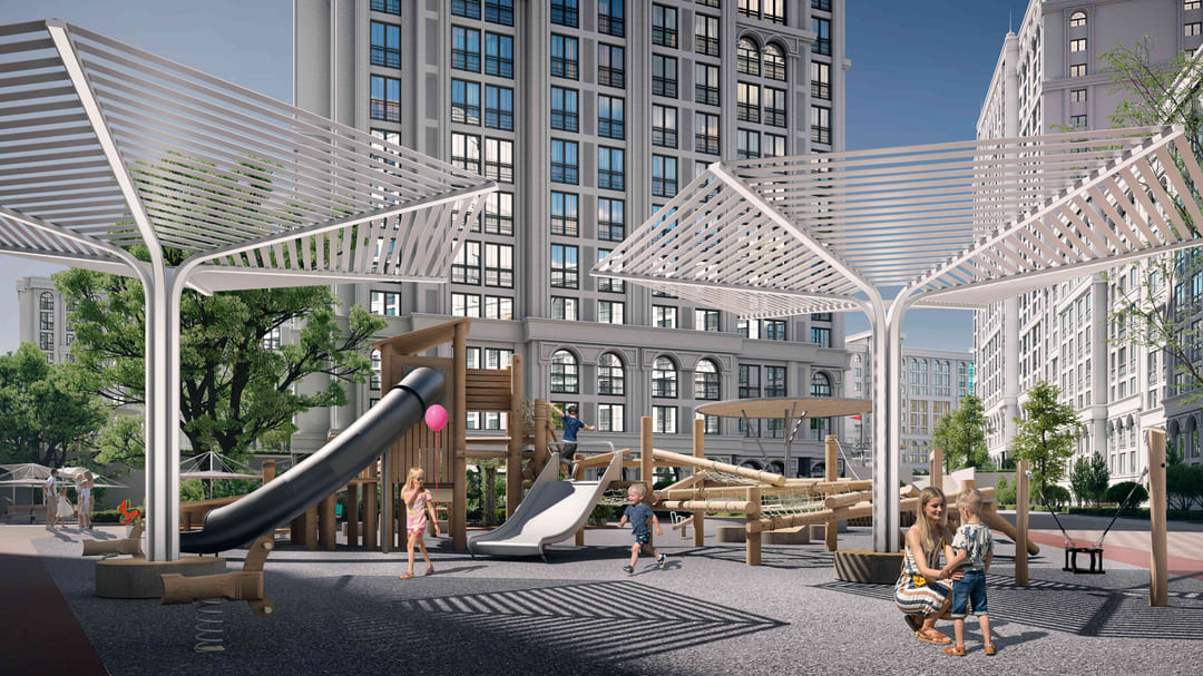 Кроме того, между корпусами ЖК создана безбарьерная среда, т.е. полностью отсутствуют бордюры и ступени, а все входные группы расположены на уровне земли. Это существенно облегчает жизнь при передвижении на детских и инвалидных колясках.