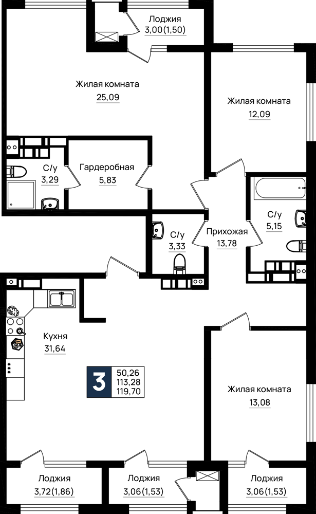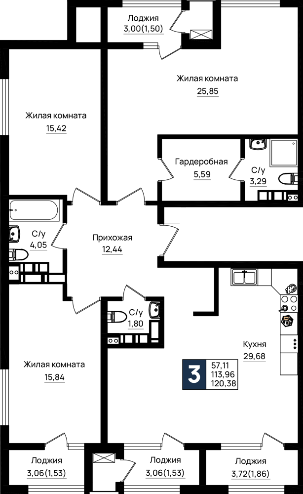 Все квартиры имеют панорамные окна с витражным остеклением, а высота потолков составляет 2,85 м.
