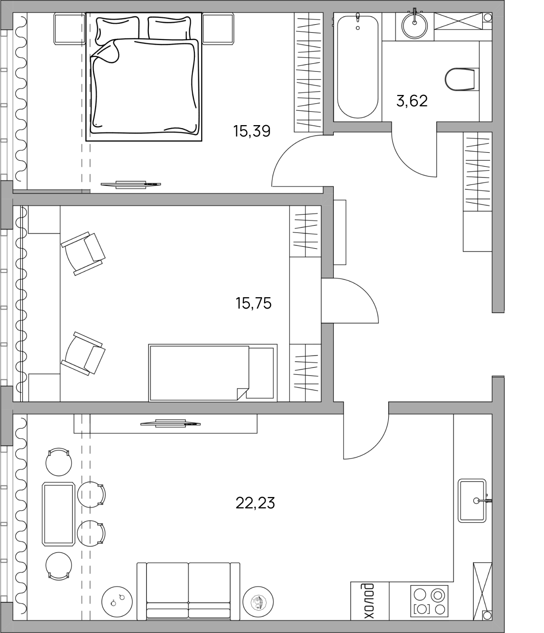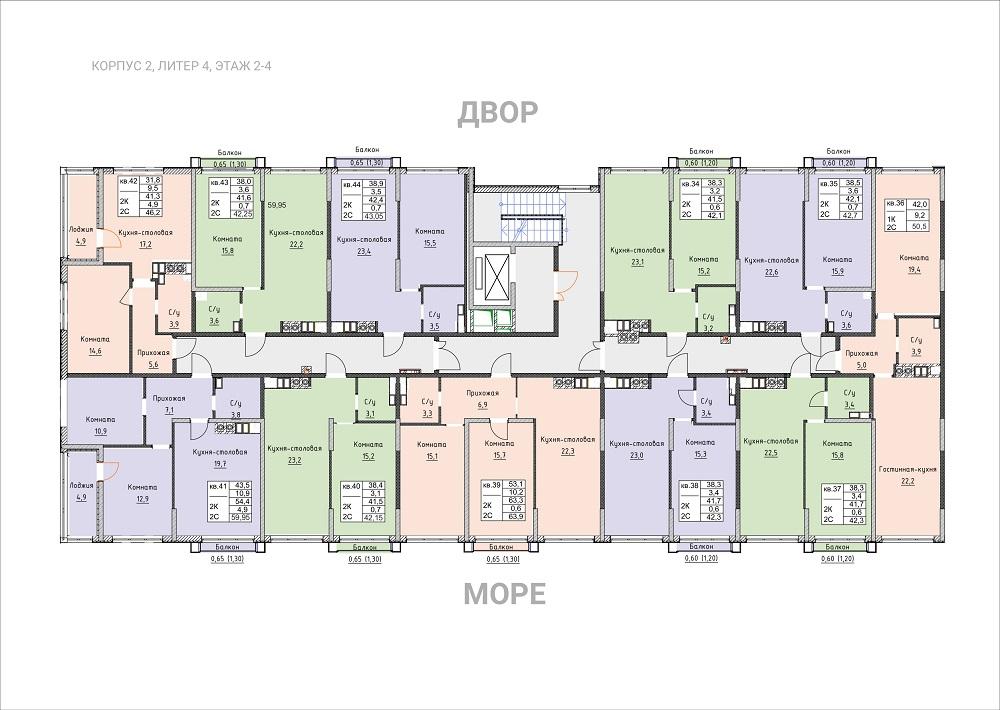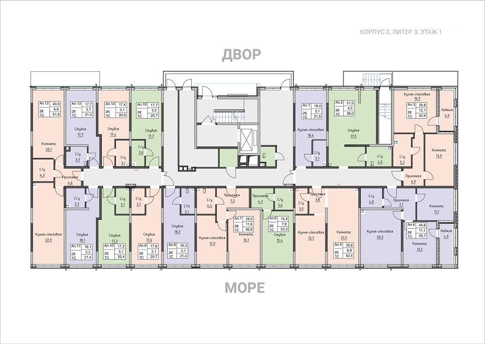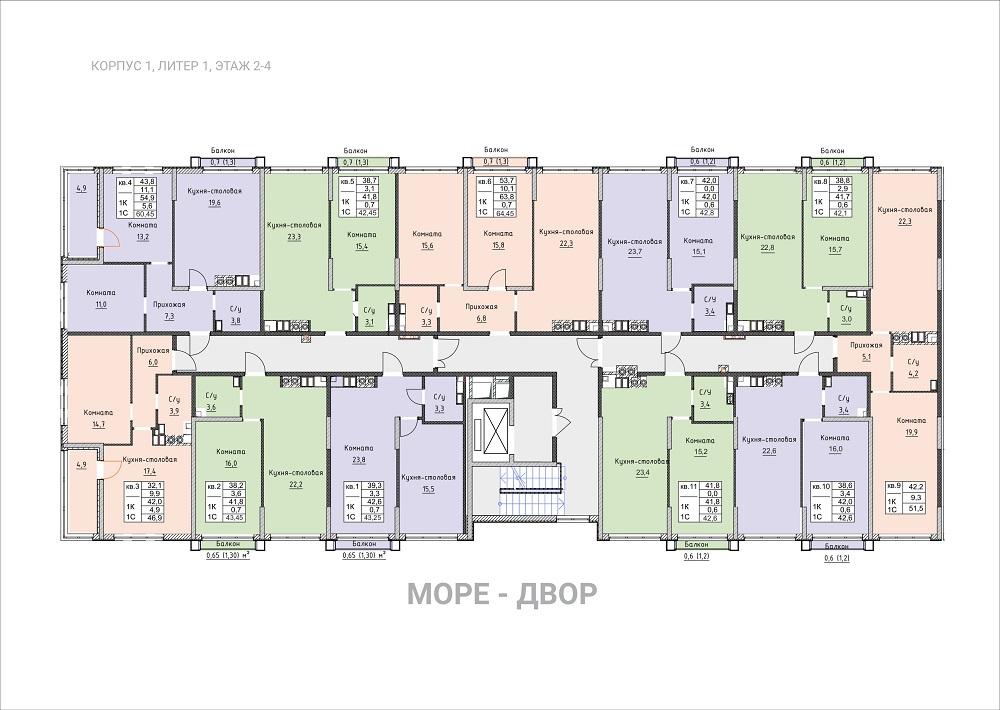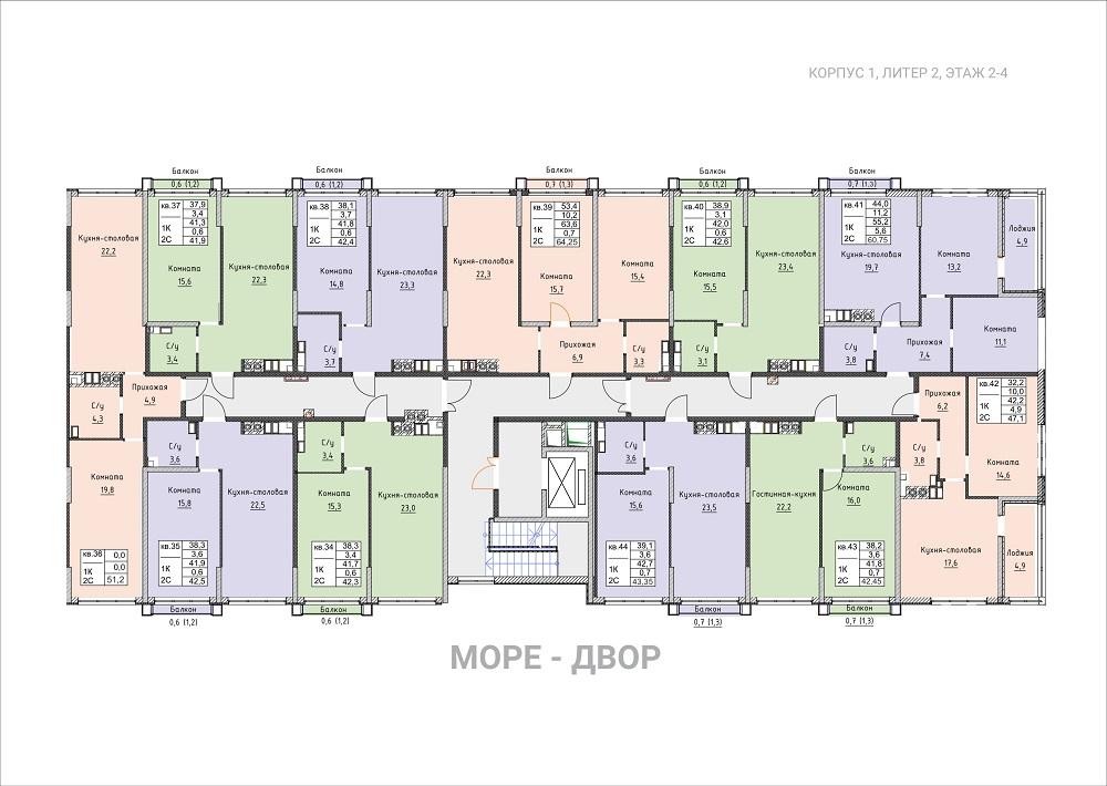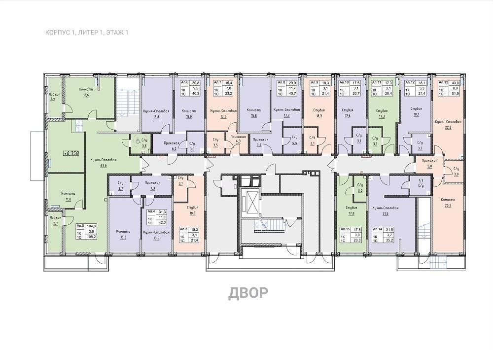 В комплексе 108 однокомнатных и 24 двухкомнатных квартир.