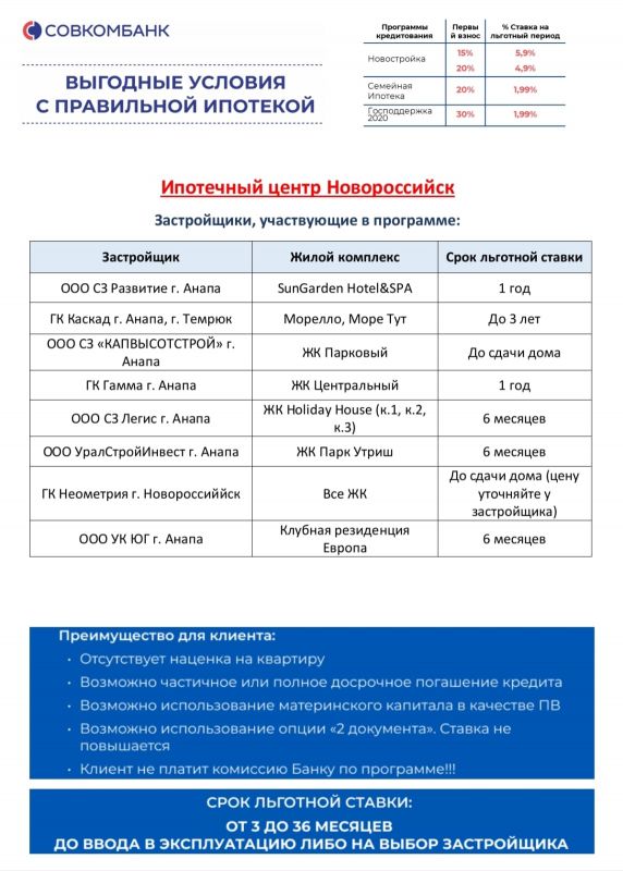 По программе "Правильная ипотека" можно приобрести квартиру/апартаменты без удорожания и по сниженной ставке на период, который определяет сам застройщик: