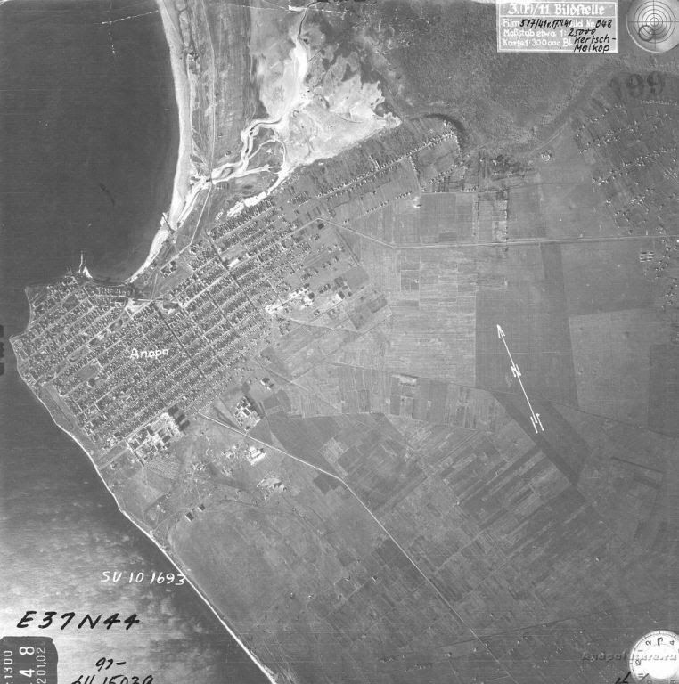 В комментариях ниже написали, что в Анапе в довоенное и военное время не было аэродрома. Ниже немецкие топографические фотографии, подтверждающие наличие военного аэродрома в Анапе на высоком берегу, там где сейчас находится микрорайон Горгиппия Морская.