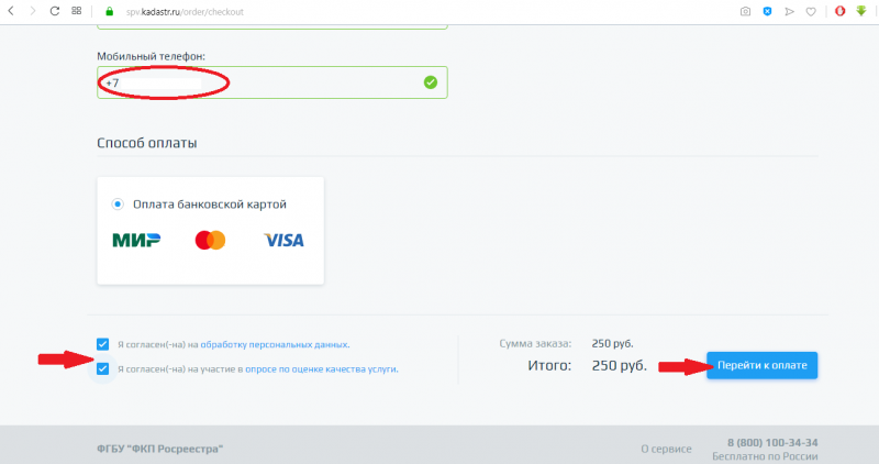4. Далее попадаем на страницу для оформления заказа, где указываем свои контактные данные (электронная почта и телефон), а также проставляем необходимые «галочки». Далее ‒ нажимаем кнопку «Перейти к оплате».