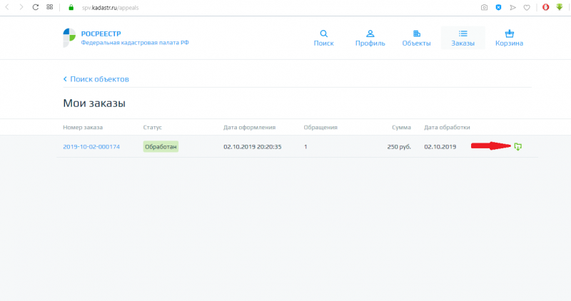 8. Таким образом, мы снова оказываемся на сайте Росреестра. Нажимаем значок «Скачать».