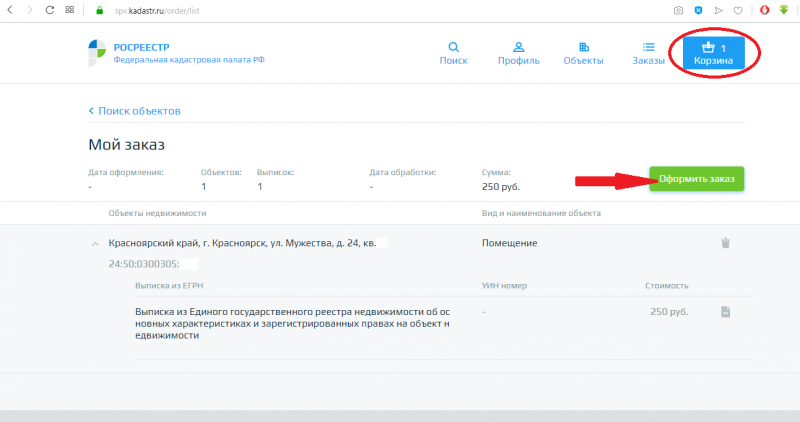 Ниже предлагаю вашему вниманию наглядную инструкцию по использованию сервиса на примере заказа Выписка из ЕГРН по одному из объектов недвижимости (в целях защиты персональных данных некоторые вводимые данные будут скрыты).