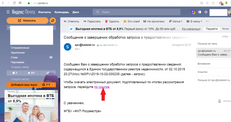 7. Заходим в свой почтовый ящик, открываем полученное письмо и переходим по ссылке.